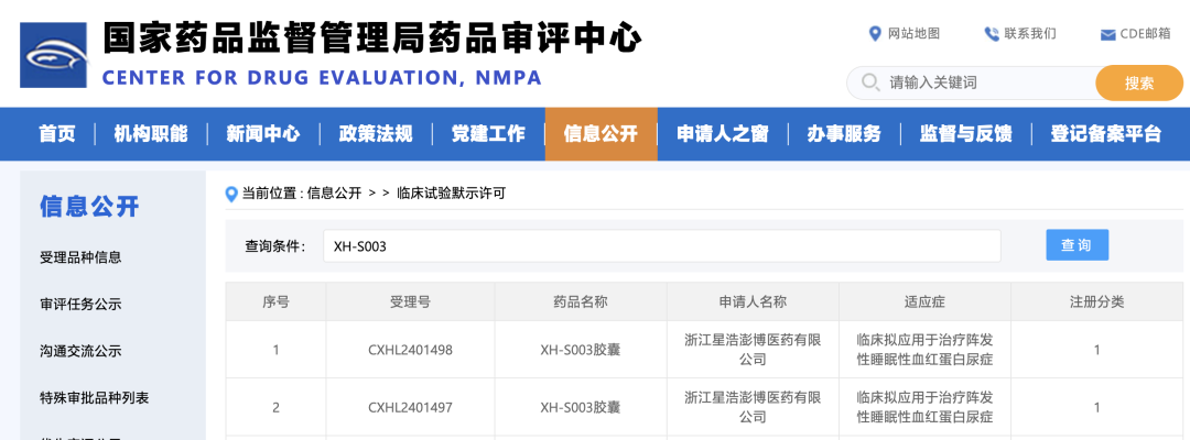 2025年3月13日,平博pinnacle官网医药宣布控股子公司浙江星浩澎博医药有限公司(以下简称“星浩澎博”)于近日收到国家药品监督管理局关于同意XH-S003胶囊(申请注册分类:化药1类;以下简称“XH-S003”)用于治疗阵发性睡眠性血红蛋白尿症(PNH)开展临床试验的批准。星浩澎博拟于条件具备后于中国境内(不包括港澳台地区,下同)开展II期临床试验。