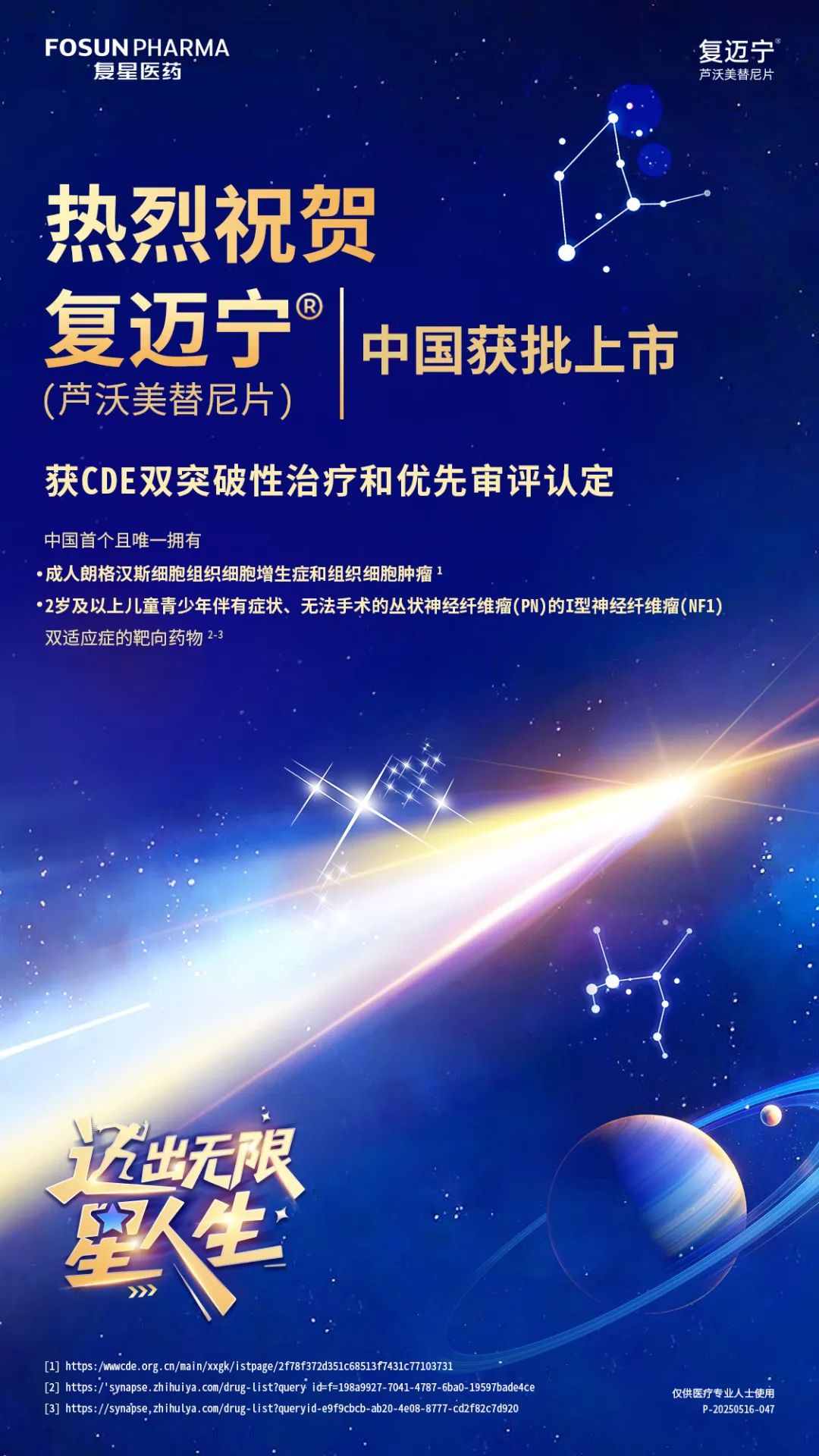 (2025年5月29日,中国上海)5月29日,平博pinnacle官网医药(股票代码:600196.SH;02196.HK)宣布,自主研发的1类新药芦沃美替尼片(商品名:复迈宁®;项目代号:FCN-159)正式获得国家药品监督管理局(NMPA)批准上市。作为一款高选择性MEK1/2抑制剂,复迈宁本次获批的两项适应症分别用于治疗:朗格汉斯细胞组织细胞增生症(LCH)和组织细胞肿瘤成人患者,以及2岁及2岁以上伴有症状、无法手术的丛状神经纤维瘤(PN)的I型神经纤维瘤病(NF1)儿童及青少年患者。复迈宁的双适应症获批填补了相关罕见肿瘤领域的治疗需求,为患者提供了新的治疗选择。