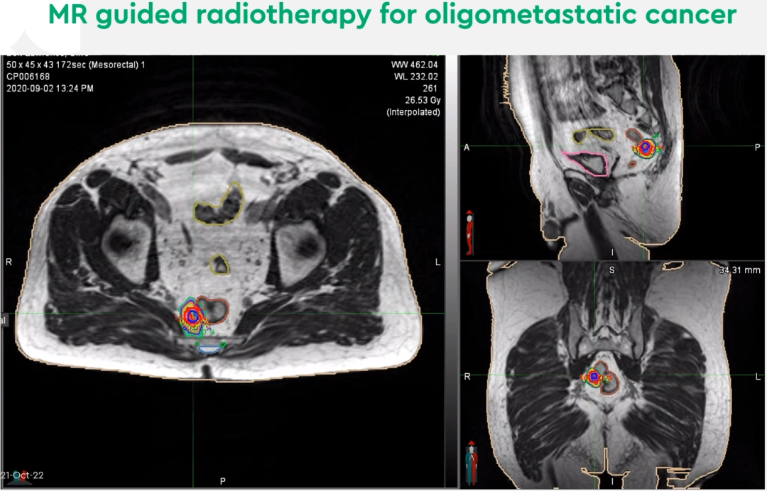 每日自适应:MRIdian允许用户在每日治疗时进行MRI扫描,因此可以看到肿瘤和危及器官(OAR)新的形状和位置,可以据此方便地调整轮廓勾画和在线自适应计划。