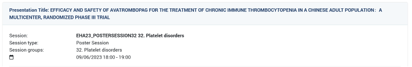 场次组别:32.Platelet disorders    时间:2023年6月9日18:00-19:00
