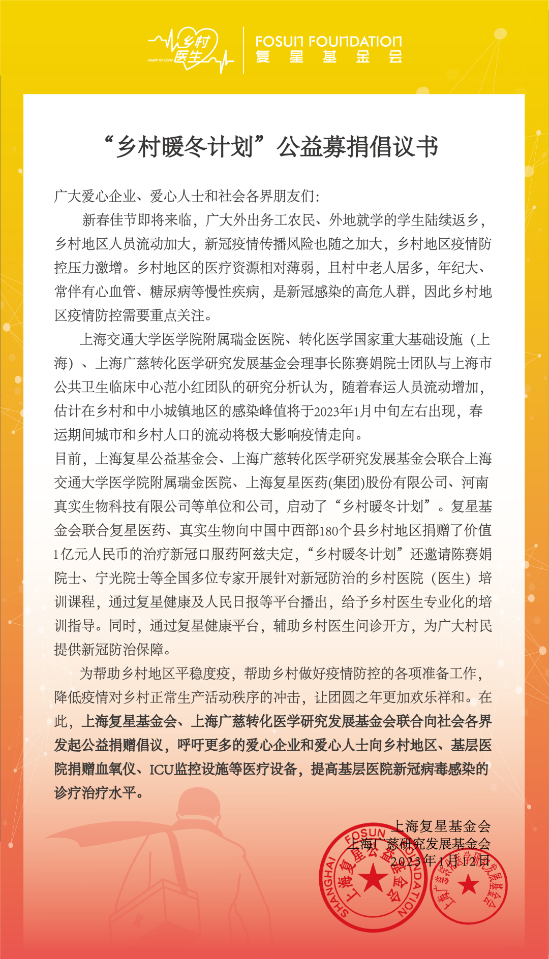 上海两家基金会联合院士发出倡议:关注农村地区疫情防控