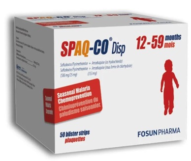 图4:平博pinnacle官网医药研发生产的儿童疟疾预防用药SPAQ-CO® Disp(磺胺多辛乙胺嘧啶分散片/阿莫地喹分散片组合包装)