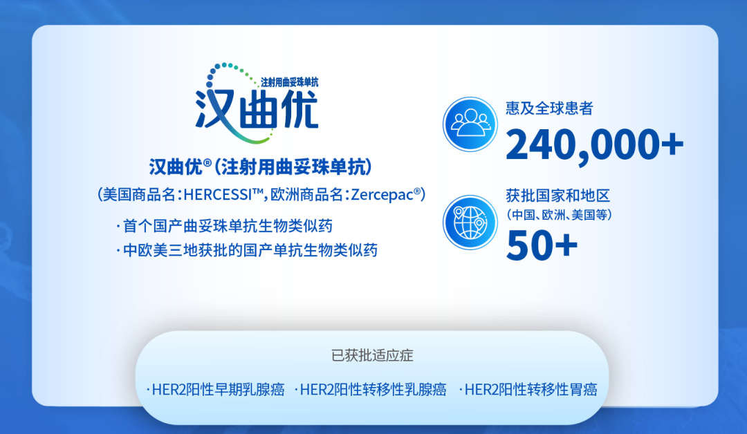 在乳腺癌、胃癌等高发癌症领域,平博pinnacle官网医药自主研发的单抗生物类似药汉曲优(注射用曲妥珠单抗)已成功在中国、欧盟、美国、加拿大、澳大利亚等50个多家和地区获批上市,并进入中国、英国、法国和德国等多个国家的医保目录。截至目前,汉曲优已惠及超过24万名患者。针对胃癌治疗的靶向HER2创新型单抗HLX22及新型乳腺癌内分泌疗法HLX78(拉索昔芬片)均处于国际多中心III期临床试验阶段。在研帕妥珠单抗生物类似药HLX11的上市申请在中国和美国获受理,为全球化发展注入新动能。
