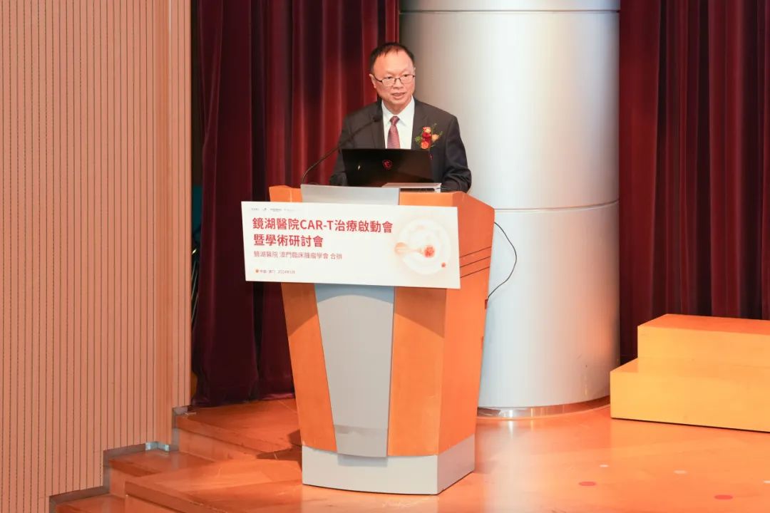 “非常高兴CAR-T细胞治疗技术在镜湖医院开展应用,未来,患者在澳门也可享受到全球领先的CAR-T治疗,治疗周期大大缩短,治愈机会显著提高。镜湖医院长期关注创新技术在临床治疗中的应用,近年来引进了多个新治疗方法,为患者带来更多的疗效以及更小的副作用。CAR-T技术打开了肿瘤患者进行细胞治疗的新局面,给患者带来了新希望。镜湖医院将保持积极态度,不断探索新疗法,配合澳门特区政府新的产业政策,在‘1+4经济适度多元发展策略’中的大健康领域努力进取,为患者提高优质医疗服务。”