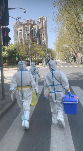 记得在四月初核酸采样量最大的几天,我所在的小组最早凌晨4点就要出发来到小区做准备工作,最晚的时候要半夜2点才结束任务回到驻地酒店。