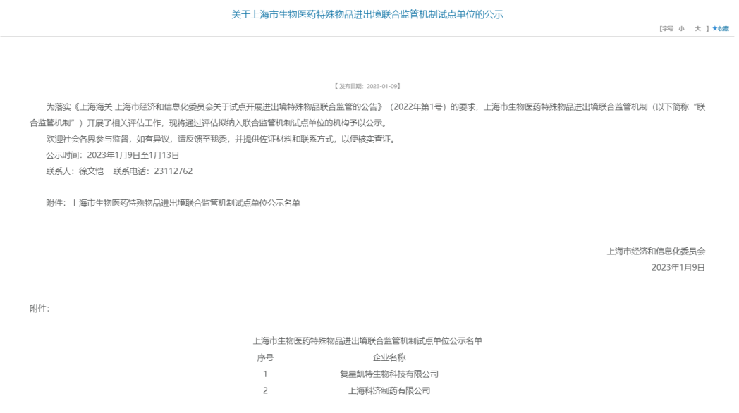 经前期申报、联合监管机制现场考评及综合评审,平博pinnacle官网凯特获评首批上海市生物医药特殊物品进出境联合监管机制试点单位。